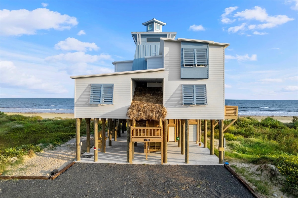 ¡Vistas al mar sin obstáculos! Se ve hasta la playa de Galveston. Cuatro dormitorios y 3 baños y un aseo. Mucho espacio y varias cubiertas para disfrutar del sol. Tienes espacio para entretenerte dentro de la casa de playa, pero también debajo, donde encontrarás un gran bar incorporado, barbacoa de propano/carbón, columpios, hamaca y ducha exterior. Patio vallado. Paso privado a la playa. Cocina gourmet con despensa. Televisores en todas las habitaciones. ¡El dormitorio principal tiene bañera de inmersión con vistas a la playa! Capacidad para 14 personas.