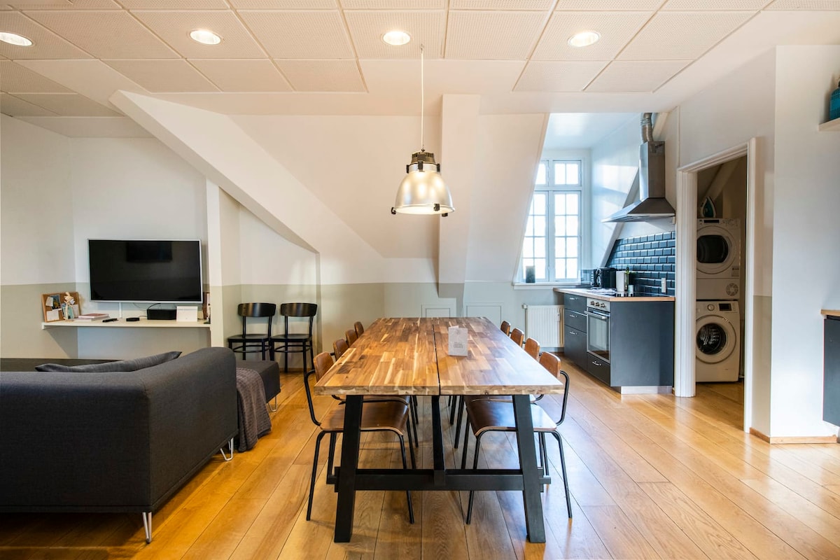 Un enorme ático para vosotros solos. Tiene capacidad para alojar cómodamente a 10 huéspedes en 5 dormitorios independientes con 2 baños independientes. La sala de estar tiene mucho espacio para comer juntos y relajarse después de un largo día fuera de casa. Te alojarás en el centro histórico de Copenhague, a la vuelta de la esquina del Jardín del Rey, un parque favorito de todos los tiempos entre los lugareños. Este anuncio es un alquiler de corta duración con licencia.