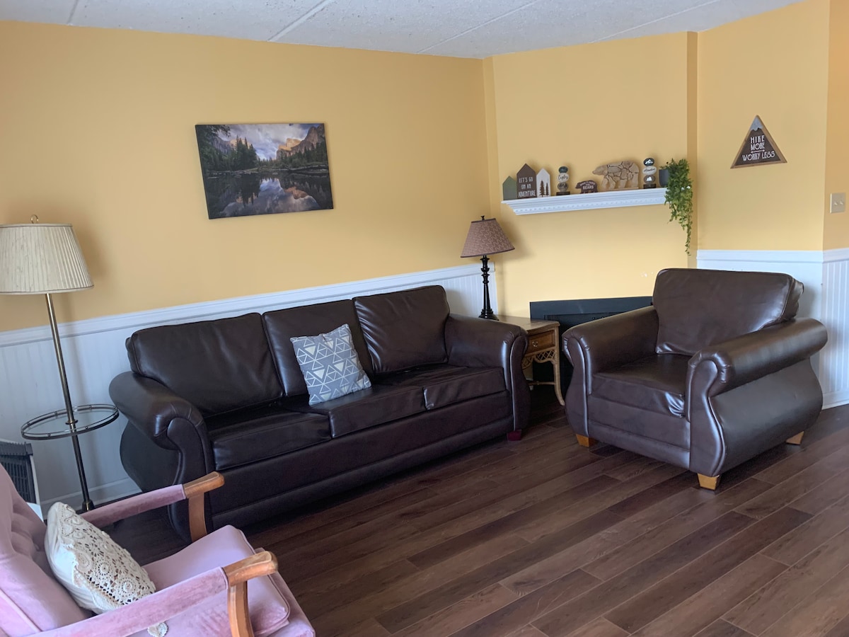 ¡Estamos en el centro de la acción! ¡Condominio recién renovado y completamente renovado! ¡Ubicado en el centro de Gatlinburg y a poca distancia de toda la emoción! El apartamento tiene hermosos suelos nuevos, una nueva y hermosa chimenea de gas de piedra (de temporada), 2 televisores, MAGNÍFICA decoración chic en metro urbano con una adorable cocina nueva de granito, cama tamaño queen en el dormitorio principal y sofá cama Queen Pull Out en la sala de estar. ¡Piscina disponible durante el verano en esta hermosa propiedad!