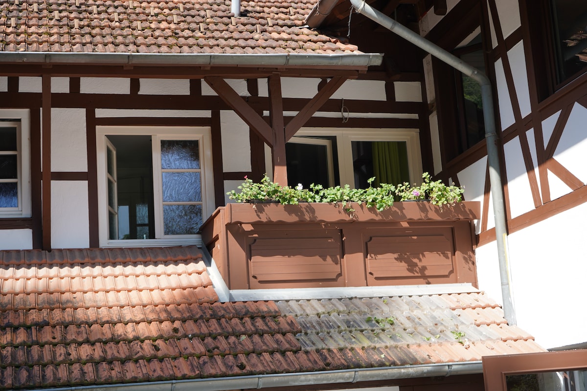 Nuestro pequeño pero equipado apartamento se encuentra en las afueras de Oberschopfheim, justo al lado de los viñedos. Ya sean excursionistas, artesanos, amantes de la naturaleza, etc., te damos una cálida bienvenida. El apartamento con cocina americana y baño es todo tuyo y se puede cerrar con llave. La entrada de la casa la compartimos. En tu pequeña terraza puedes disfrutar del sol todo el día. En la casa vive Josef junto con el cerdo vietnamita Wilhelm y nuestros gatos Indie, Hera y Odin.🐷 🐈⬛ 🐈