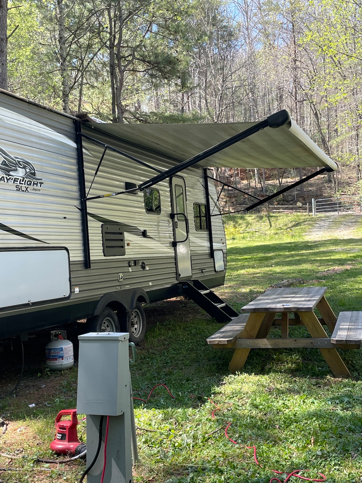 La autocaravana se encuentra en un terreno de 2 acres con acceso al lago Hartwell. Hay senderos cercanos con muchas opciones de exploración diferentes en la zona. Puedes interactuar conmigo por teléfono móvil o en línea. Puedo mostrarte cómo operar la estufa de propano y las luces y responder a cualquier otra pregunta que tengas. La caravana comparte el mismo camino de entrada con la casa verde. También tengo kayaks disponibles para alquilar, así que pregúntame por los precios.