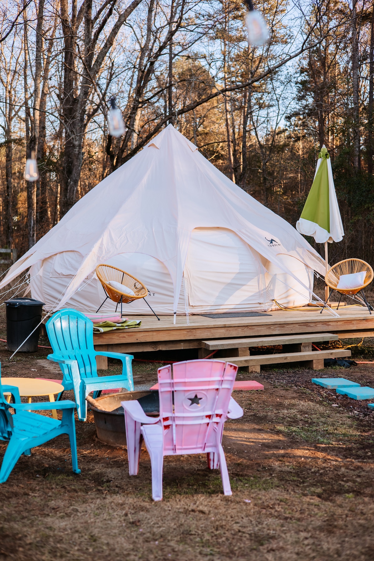 Bienvenido a Mystic Woods, una escapada de glamping (camping glamoroso) en el encantador Warm Springs, GA, a solo una hora del aeropuerto de Atlanta Hartsfield. Disfruta de nuestra relajante sauna, relájate en la bañera de hidromasaje bajo un cielo estrellado o vigoriza tus sentidos con un emocionante baño de hielo. Comparte historias alrededor de un fogón crepitante o encuentra consuelo en el tranquilo bosque. Mystic Woods te invita a reconectar con la naturaleza y a tus seres queridos, creando momentos preciados que persisten mucho después de tu visita.