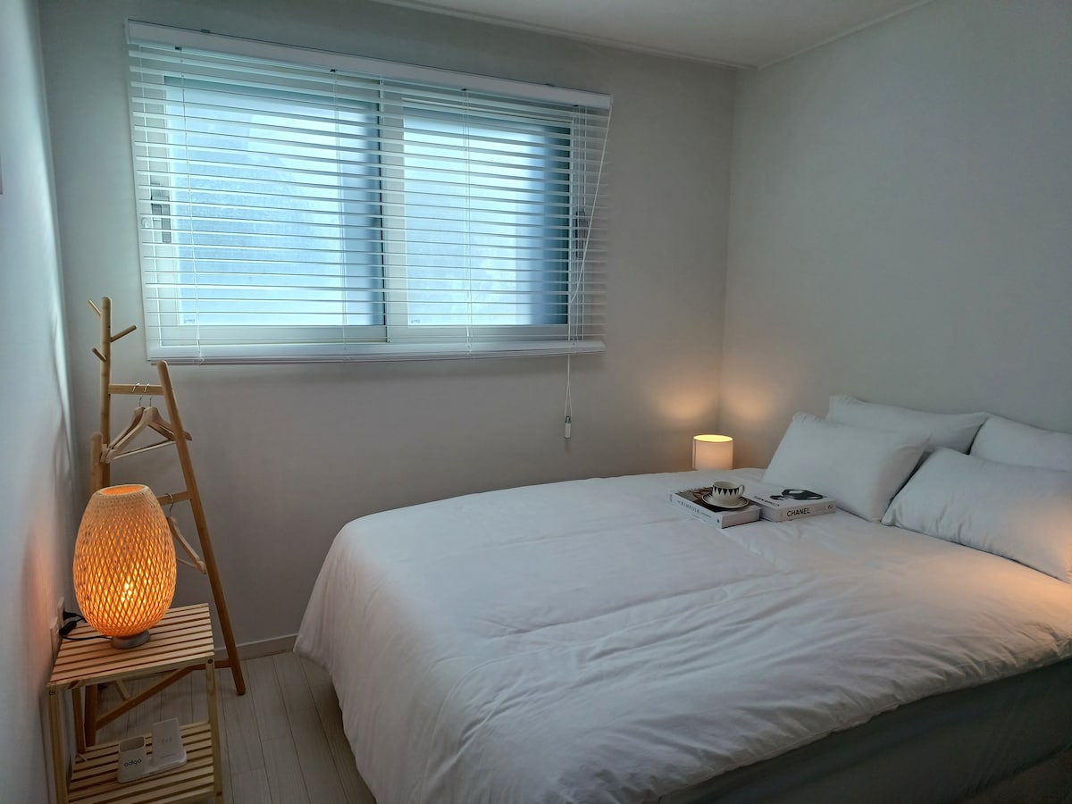 [Yuldam] Bienvenido a Yuldam Stay En 🌟 perfecto estado y con estilo europeo Siente la sensibilidad de un viaje a Europa en este espacio francés de mediados de siglo. Haz una pausa en tu ajetreada vida y disfruta de un tiempo acogedor y sanador. Un momento único con tus seres 🏠 queridos Dos dormitorios independientes y dos camas tamaño queen y una cama individual supercómoda están preparados para ti. Hay una generosa mesa de comedor para 5 personas, lo que la convierte en el espacio perfecto para cocinar, comer y compartir momentos preciosos con tu familia, pareja y amigos. Alojamiento 🛏 Entorno de estancia cómodo • Pasa un día de relax con dos dormitorios independientes y una cocina y comedor generosos. • Con 3 camas, te proporcionaremos el mejor viaje relajante incluso para 5 viajeros. • Relájate en un ambiente relajado con una iluminación ambiental sutil y unos interiores emocionales.