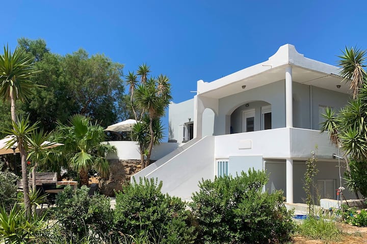 Ubicada en la bahía preservada de Grammeno, esta villa cuenta con una excelente ubicación frente a la playa, única en Palaiochora. Su jardín con césped, una joya rara en el área, proporciona acceso directo y privado a la playa de arena fina para nadar en el agua cristalina de la bahía. Tanto la villa como la grandiosa zona exterior están ocultas a la vista de los transeúntes y son totalmente exclusivas para nuestros huéspedes, ofreciendo un grado excepcional de privacidad.