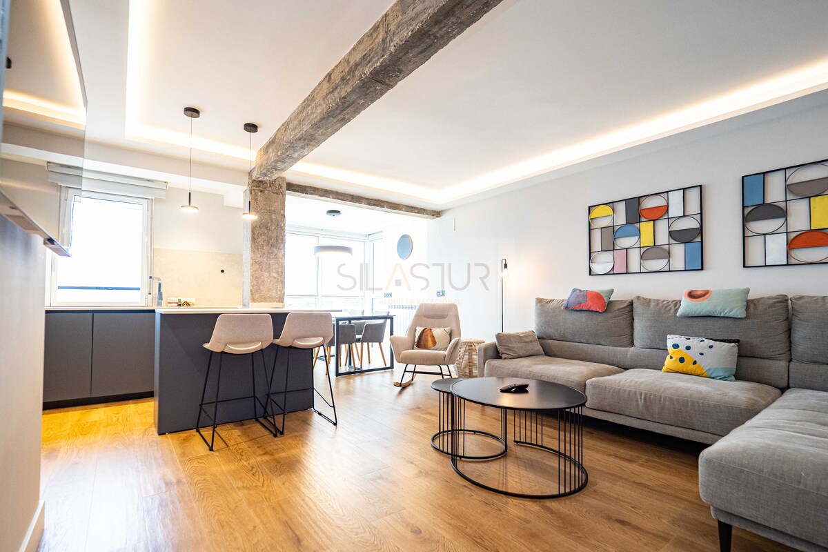 Nuevo apartamento en Plaza Mayor de Gijon. Equipado con muebles de diseño y accesorios de lujo para hacer tu estancia aún más inolvidable. Localizado en la misma Plaza Mayor de la ciudad. Podrás disfrutar del ambiente del mítico barrio antiguo de Cimadevilla, con toda su restauración y gastronomía, y acceder directamente a pie a todos los puntos emblemáticos de Gijón. Parking incluido para olvidarse del coche. acceso directo a la playa de San Lorenzo, que se encuentra tan solo a 50m.