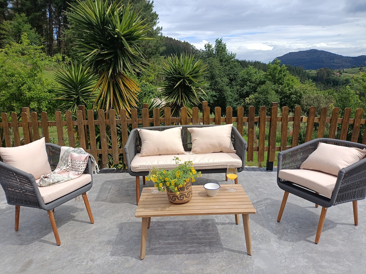 Desconecta de la rutina en este alojamiento único y relajante. Ideal para familias y grupos. En un entorno natural, rodeado de montañas, ideal para desconectar y conocer Euskal Herria dado que se encuentra a menos de 70 km de todas las capitales vascas.