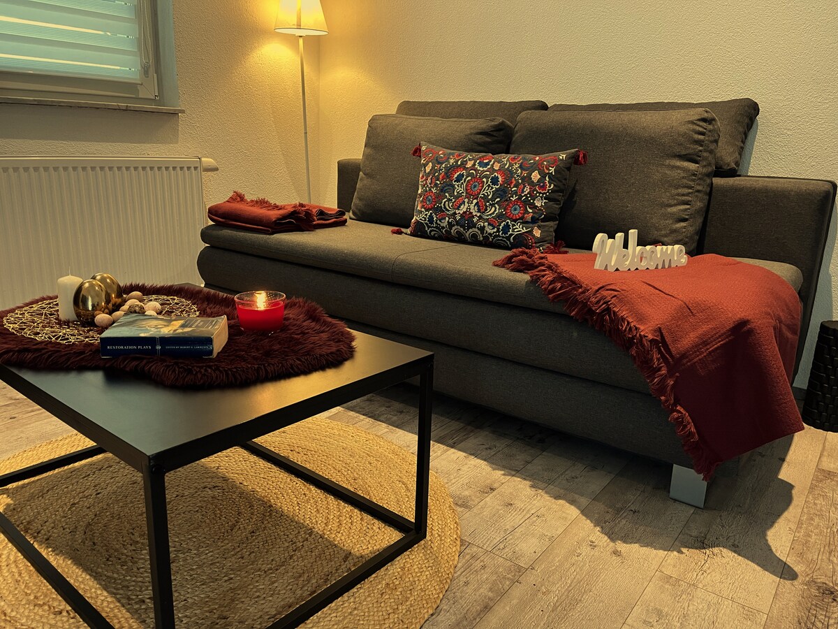 Tiempo de espera con estilo con sauna privada Perfecto para pasar un rato tranquilo a solas, en pareja o con tu mejor amigo. El apartamento amueblado de alta calidad ofrece un ambiente cálido y relajado y está tranquilamente lejos del bullicio. Bad Neuenahr y Ahrweiler están a pocos minutos. Lo más destacado es la sauna privada para uso exclusivo. La cocina totalmente equipada, así como las instalaciones de lavandería y secado, también hacen que las estancias más largas sean cómodas y sencillas.