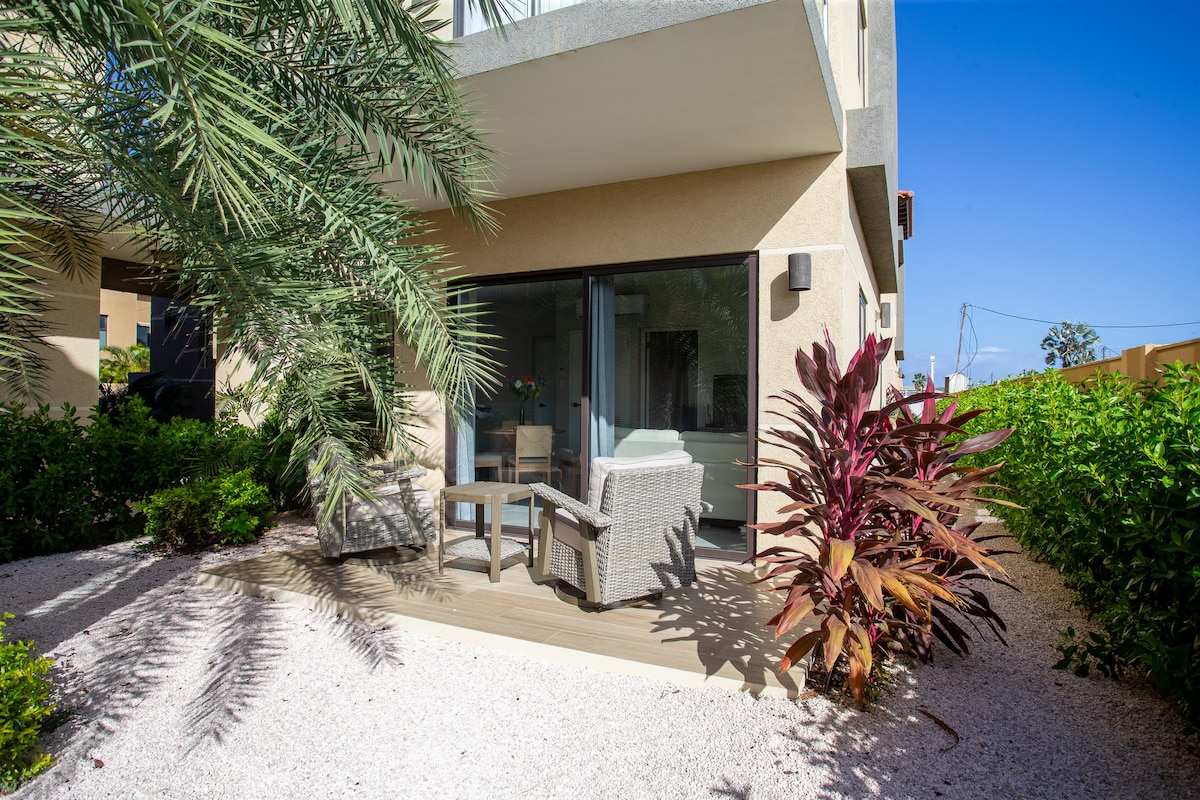 Amplio, soleado y bien equipado apartamento a estrenar de 2 dormitorios y 2 baños con un gran patio y balcón en la prestigiosa comunidad cerrada de Gold Coast. La comunidad cuenta con 3 piscinas, un restaurante, canchas de tenis y un gimnasio. Hermosos jardines llenos de flores y palmeras. Estás a 2 minutos en coche de las hermosas playas de Arashi, Boca Catalina y Malmok. También puedes ir caminando a la playa en 10 minutos. ¡El apartamento está equipado con todo lo necesario para unas vacaciones maravillosas!