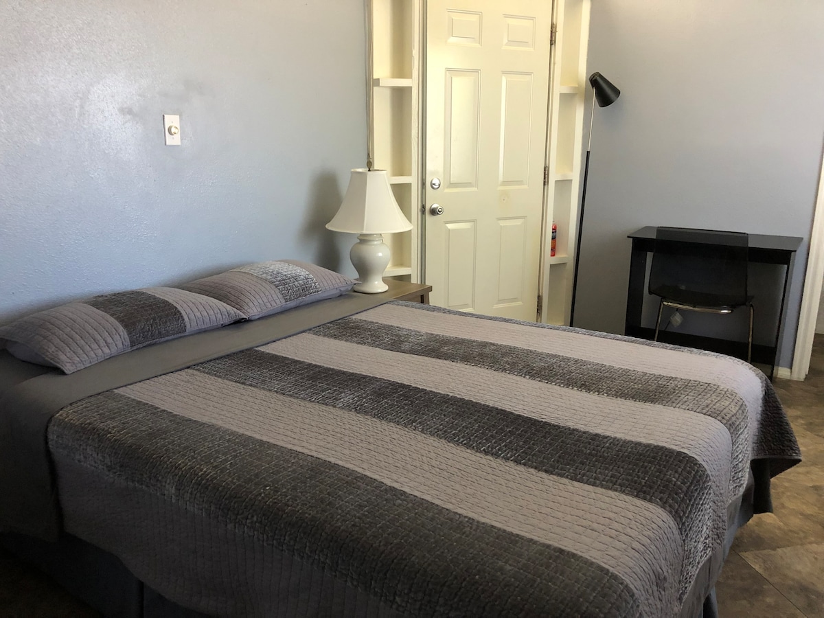 ¡Te damos la bienvenida a nuestro lindo y peculiar Bunkhouse! Esta sencilla suite con estudio está equipada con una cama tamaño queen, baño con ducha de pie y cafetera. La entrada al Bunkhouse es a través de la habitación Arizona/lavadero, que ocasionalmente utilizamos nosotros u otros huéspedes de la propiedad. Una vez dentro, tendrás tu propia puerta privada con cerradura con teclado. Este alojamiento es perfecto para el viajero amigable que ama los espacios únicos y no le importa conocer a un anfitrión o compañero de viaje y saludar.