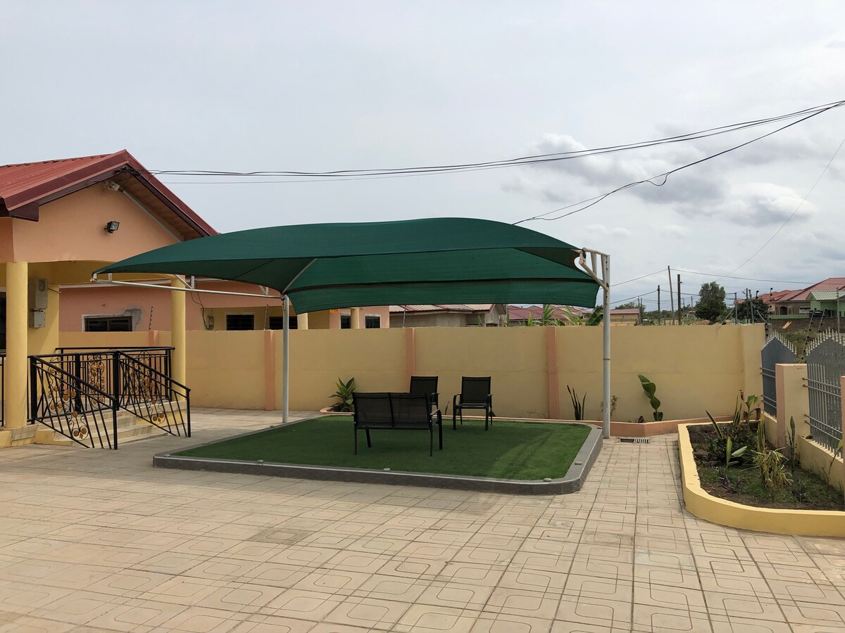 Mordern, casa familiar totalmente amueblada, en una urbanización residencial ubicada en la ciudad millenium de Kasoa. 3 dormitorios dobles todos con baño privado, el dormitorio principal incluye un baño, unidades de aire acondicionado instaladas en 2 camas y la sala de estar. La casa se encuentra a 20 minutos en coche del centro comercial West Hills y a 10 minutos de la playa de Kokrobite. A 1 hora en coche de la costa del cabo y los castillos de Elmina. Hay un supermercado a poca distancia a pie.