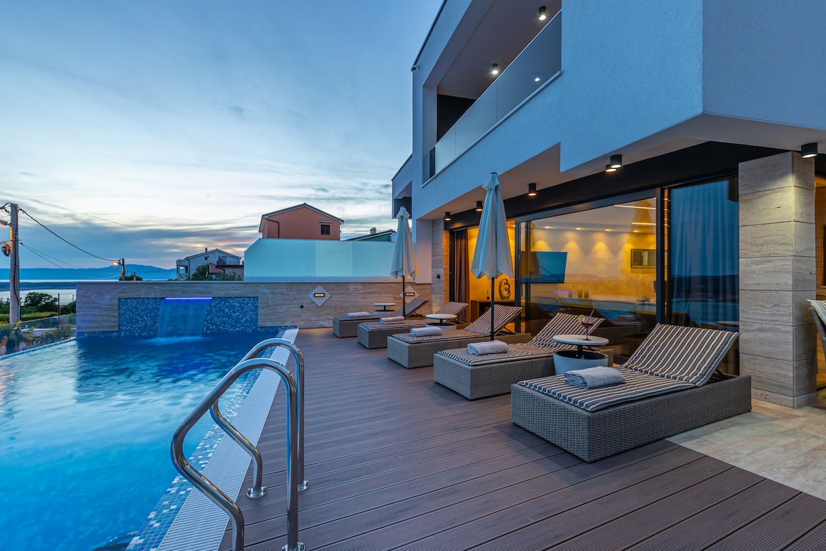 Villa Sky Pool Medveja: piscina climatizada, spa, vistas al mar