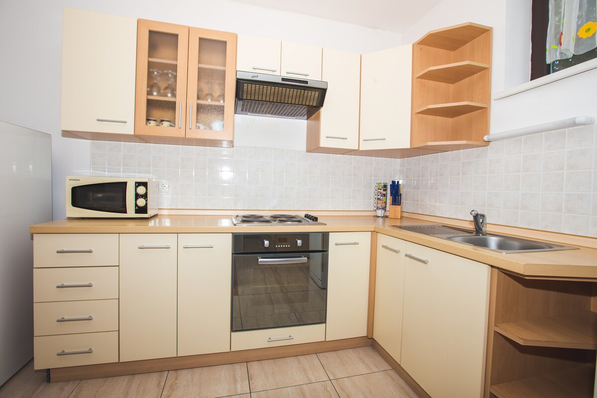 El apartamento tiene una amplia terraza con vistas al mar, dos habitaciones separadas con camas dobles, una cocina totalmente equipada, comedor, televisión, ducha y aseo, internet y aparcamiento gratuito en el patio. Varias playas de arena espaciosas se encuentran a 100 metros de la casa, así como otras playas variadas, como las más pequeñas, rocosas e íntimas. Justo al lado de la playa más cercana se encuentra un paseo marítimo con una hermosa vista que conduce al centro del casco antiguo de Rab. Además, cerca hay numerosas instalaciones como chiringuitos, restaurantes, masajes, cajeros automáticos, panaderías, tiendas, tiendas, botas de taxis y algunos deportes para adultos y niños, como ejercicios gratuitos todas las mañanas con un entrenador en el mar, parques infantiles y parques infantiles organizados al aire libre, botes a pedales, kayaks e instalaciones similares.