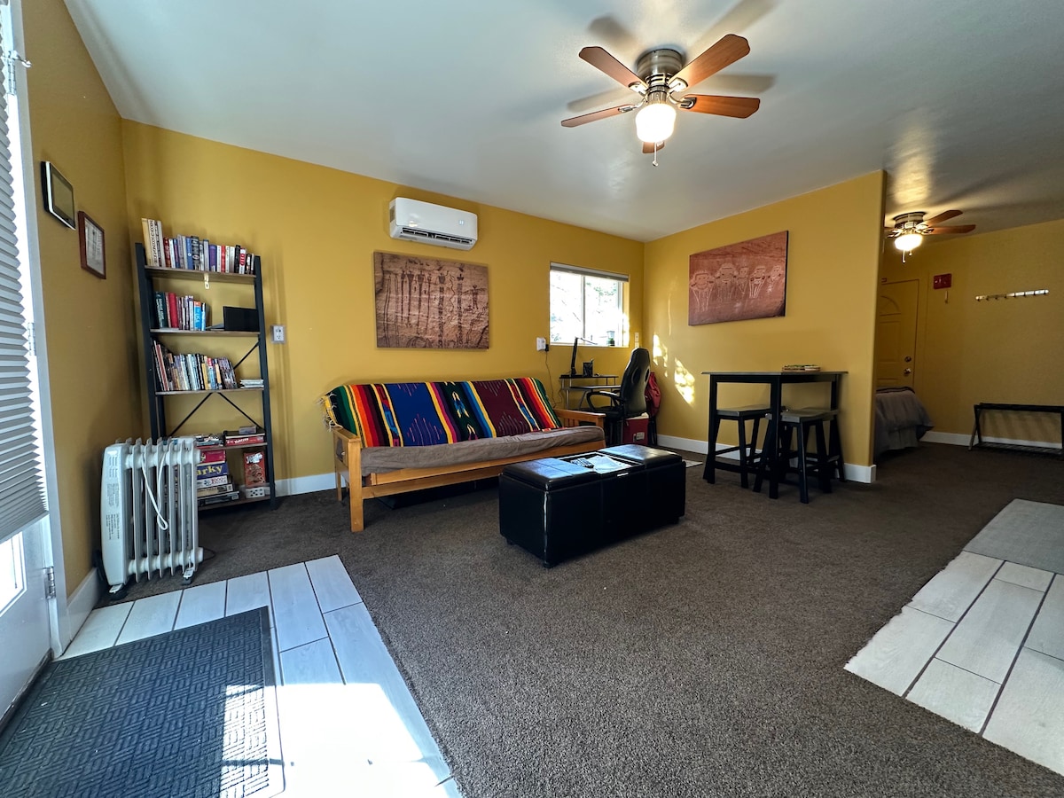 Ubicado a unas 3 millas al sur de Moab, en el lado sombreado del valle «Moab Rim». El espacio es una suite privada con entrada independiente, sala de estar al aire libre y aparcamiento. Camina o ve en bicicleta a las rutas de senderismo de Pipedream y Hidden Valley. Cerca de los parques nacionales de los Arcos y Canyonlands, Sand Flats y el área BFE. Somos una empresa con licencia en el condado de Grand.