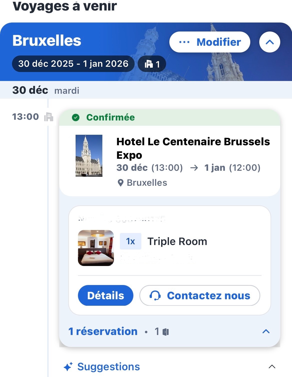Pour cause de problème familiale je suis contrainte de louer ma chambre d’hôtel au centenaire brusselle expo du 31/12 au 01/01. Accédez facilement aux festival FKNYE pour l’occasion, 15 minutes à pied ! Petit déjeuner et parking compris ! Prix : 555€ pour trois personnes avec parking et petit déjeuner inclus paiements par paypa l pour plus de sécurité Plus de preuve et de précisions par message
