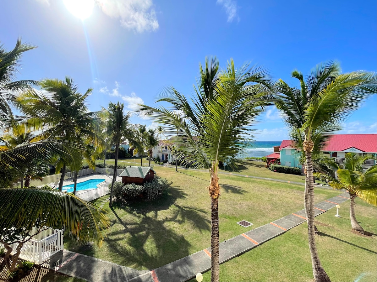 apartamento de 75 m 2 reformado con vistas al mar en la residencia de crystal beach en saint François . - el complejo dispone de 2 piscinas con acceso directo a la playa de Raisins Clairs. -un bonito parque arbolado tranquilo y entrada segura con su galería comercial ( panadería,supermercado,restaurantes y comida rápida,peluquería,salón de masajes ,.. ) el apartamento consta de: - 2 habitaciones amplias y con aire acondicionado -cocina moderna -ducha italiana - cisterna de agua - wifi -parking numerado