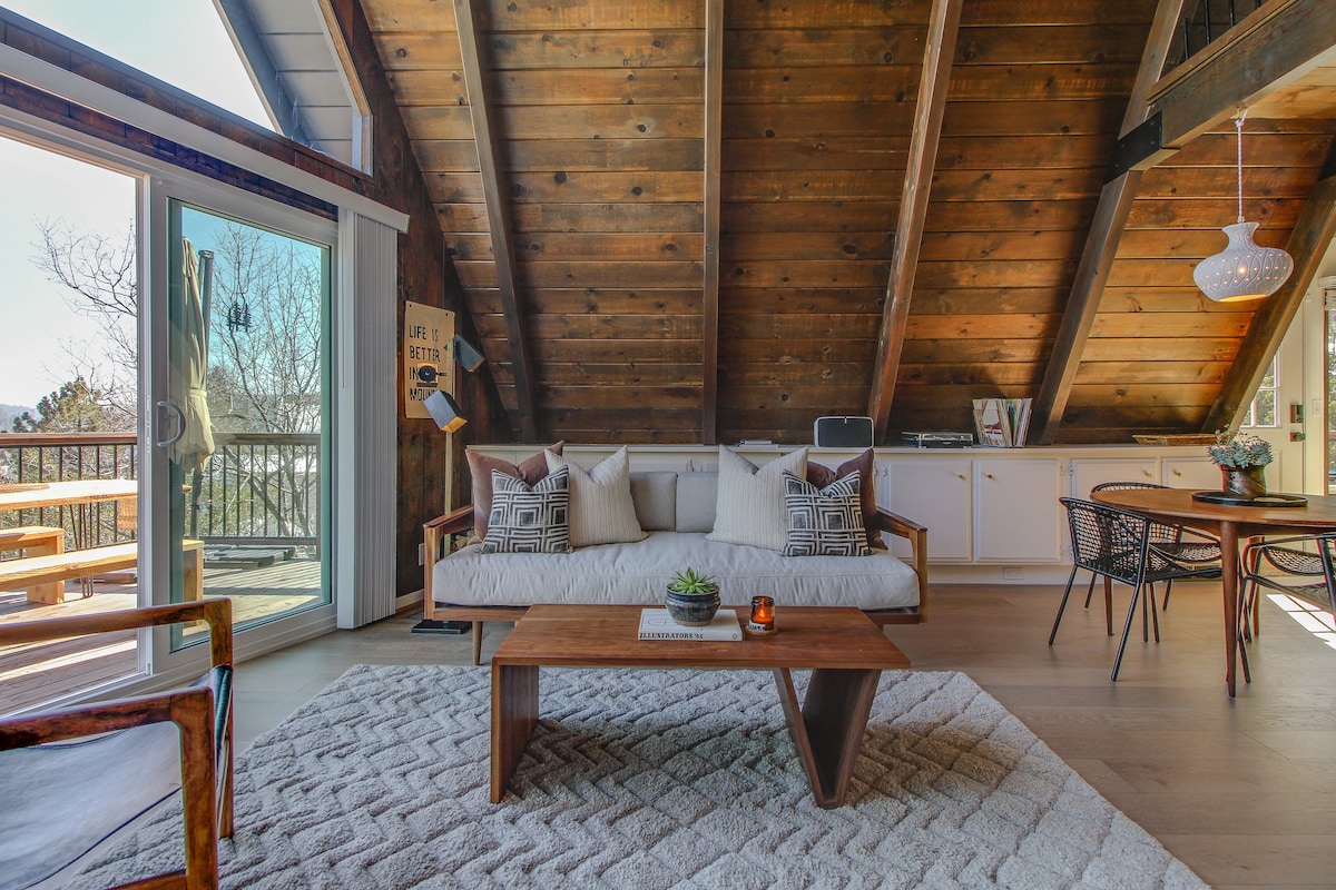 Bienvenido al Flying W: trae a tu cachorro y escápate a los árboles. Este libro de cuentos de mediados de siglo en forma de A en Lake Arrowhead te envuelve en vistas al bosque a través de ventanas panorámicas. Tómate el café de la mañana en la terraza superior, reúnete alrededor del fogón bajo las estrellas y disfruta del encanto vintage y la comodidad moderna. Capacidad para 6 personas con espacio para amigos, familiares y tu compañero de cuatro patas. A pocos minutos del pueblo, cerca de las pistas de esquí, en un entorno tranquilo.