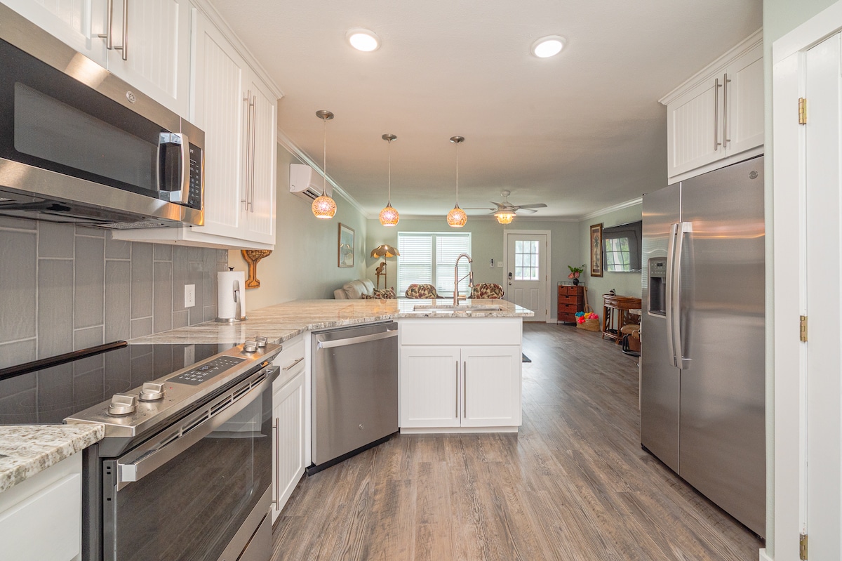 Private bungalow, centrally located, close to many beaches, perfect for couples, fisherman and beach goers. The property is covered with beautiful towering oaks, palm trees, flowers, and koi pond. Make yourself at home, explore the entire area, enjoy sitting in the swing in the late afternoon and chill! We are pet friendly, a one time fee of 30. Payable upon your departure, which can be left in the "Pet Fee" deposit jar. The bungalow is privacy fenced, ample parking, plus private patio & grill.