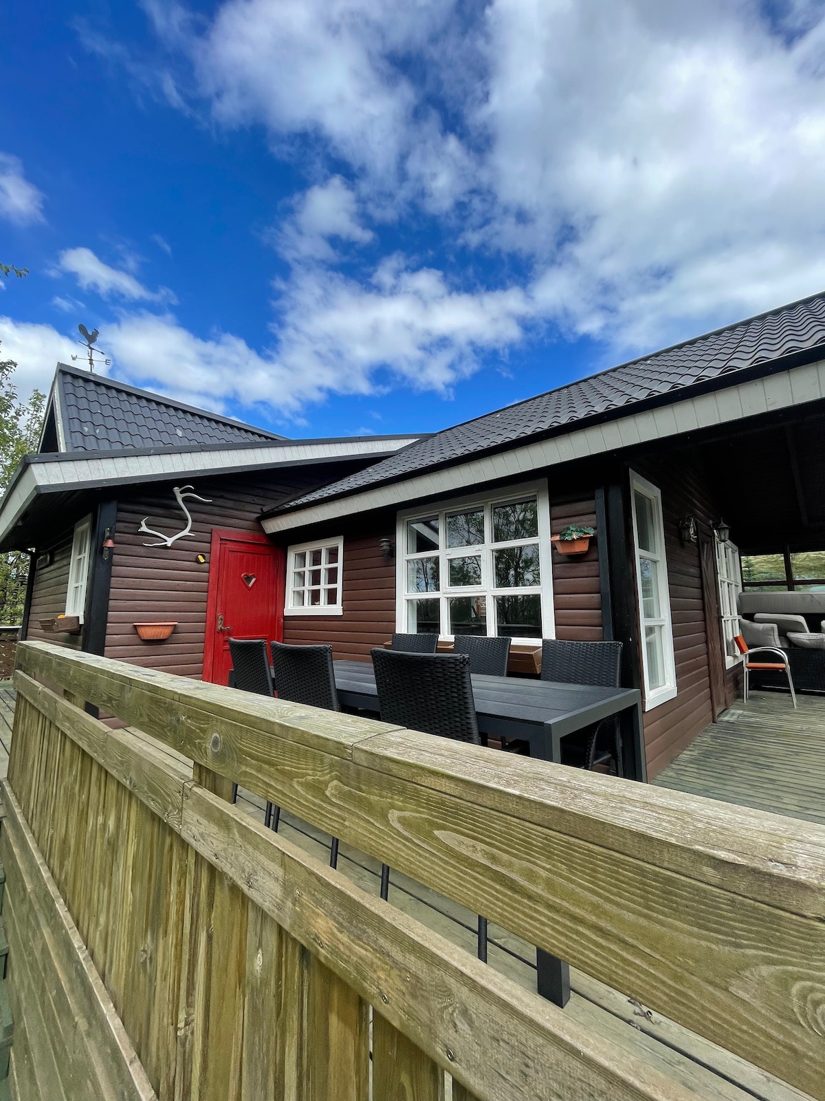 Nuestra cabaña espaciosa y luminosa se encuentra en el sur de Islandia. Situado en una ubicación perfecta, en medio del Círculo Dorado, estarás rodeado de un paisaje impresionante. A solo 1 hora en coche de Reikiavik. La cabaña tiene capacidad para 12 personas y cuenta con todo lo necesario para pasar unas vacaciones perfectas con tu grupo o familia. Registro de entrada las 24 horas, aparcamiento gratuito y conexión wifi gratuita.