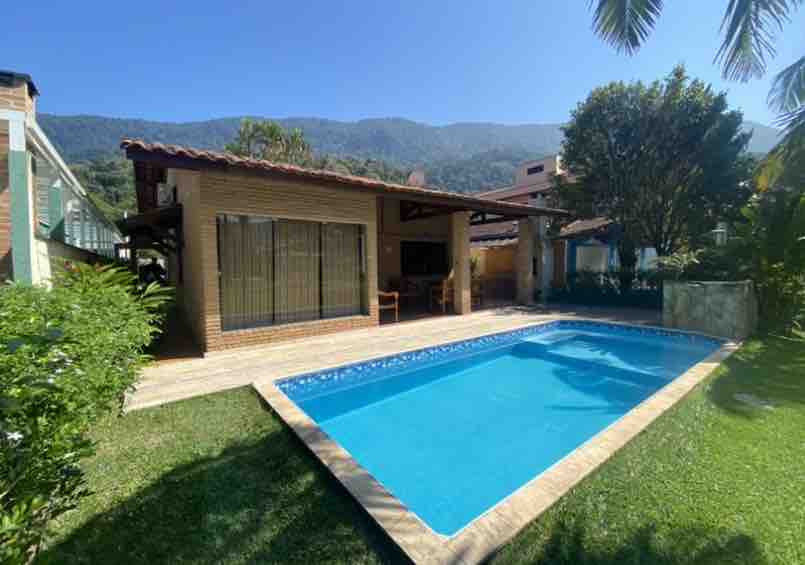 Propiedad en primera línea de playa con hermosas vistas y amplio jardín. La casa tiene vistas al mar desde todos los ambientes, desde la mesa de desayuno hasta la comodidad de la cama. Ubicada en una ARIE (área de relevante interés ecológico), donde se encuentra el Instituto de Investigaciones Marinas de la Usp. Acceso a la propiedad y a 2 playas controladas por tierra. Frente a la playa hay un bar flotante para embarcaciones y puede haber música.