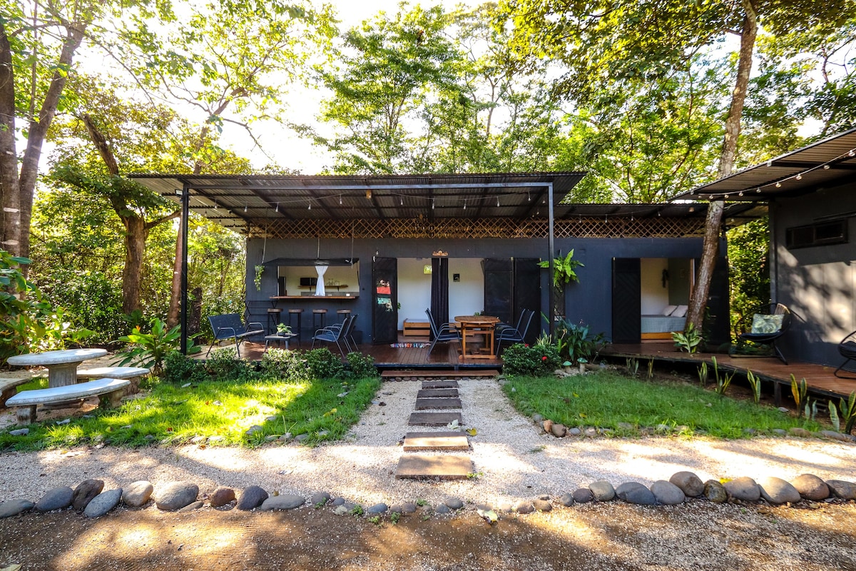 A solo 1 km de Avellanas, esta playa tranquila ofrece un contraste con las multitudes. La moderna y bien equipada casa de 2 dormitorios y 1 baño cuenta con dos camas queen, aire acondicionado en ambas habitaciones y una terraza de madera de teca de 12 metros con vistas a un sereno barranco que se convierte en un arroyo en la temporada de lluvias. A solo 250 metros de la playa por un sendero pintoresco, con piscina. Incluye wifi de fibra óptica, aparcamiento gratuito, lavadora y parrilla al aire libre: todo lo que necesitas para una estancia relajante.
