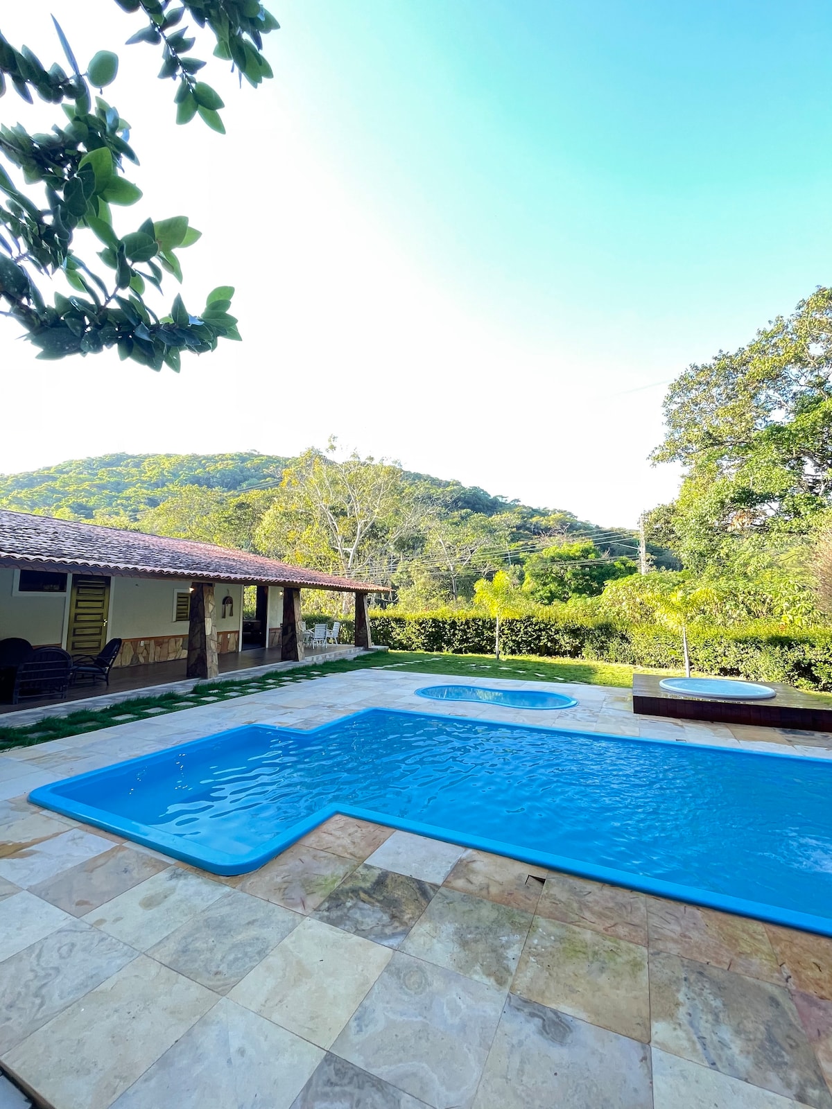 Cuenta con piscina, hidromasaje y parque infantil. Tiene una vista fantástica de las montañas, ya que se encuentra en la cima de una de ellas. Se encuentra dentro de un bosque nativo muy bien conservado donde predomina el canto de los pájaros. El espacio se encuentra a 5 km del centro de la ciudad de Guaramiranga. Es excelente para parejas y familias con niños, ya que es seguro y excelente para el ocio y el descanso. Cuenta con 4 suites más habitación, todas con cama de matrimonio. 10 personas en camas con mucha comodidad. Amplia sala de estar/comedor. TV.