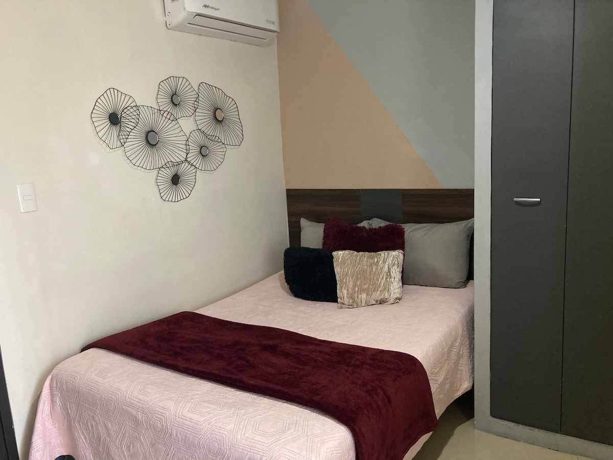 Lugar tranquilo y acogedor, con departamentos independientes Se encuentra a 5 minutos de plazas comerciales y 8 minutos del centro; es una zona segura, con poco trafico vehicular, pero con conectividad rápida a grandes avenidas que facilitarán tu movimiento por la ciudad. Cuenta con estacionamiento privado para dos autos. El alojamiento tiene servicios y amenidades para hacer de tu estancia una gran experiencia.