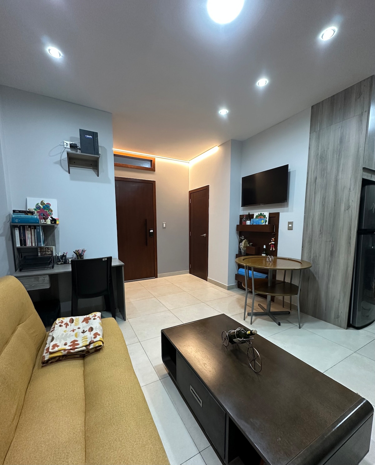 Suite full amoblada y renovada ideal para extranjeros y ejecutivos. Acabados de lujo. Cama queen size, sofá cama, smart-tv en sala y habitacion, wi-fi. Queda ubicado en una las zonas mas prestigiosas y a 3 minutos del aeropuerto. Cuenta con recepción disponible 24h. Cerca de cines, bancos, restaurantes, hoteles, supermercados, hospital y centros comerciales. Tiene lavadora y secadora, cocina eléctrica, refrigeradora, microondas, cafetera, tostadora y utensilios de cocina.