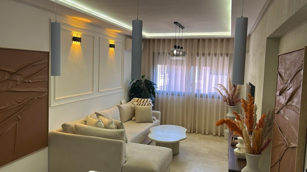 Nuestro apartamento está convenientemente ubicado en el corazón de Marrakech. A poca distancia a pie de la estación de tren, numerosas cafeterías, restaurantes, tiendas de comestibles y supermercados. El aeropuerto está a solo 12 minutos en coche, por lo que es ideal para los viajeros. • La propiedad ofrece wifi de alta velocidad, Netflix e IPTV, aire acondicionado, piscina cubierta, gimnasio, aparcamiento privado y cubierto, y seguridad y vigilancia las 24 horas, los 7 días de la semana.