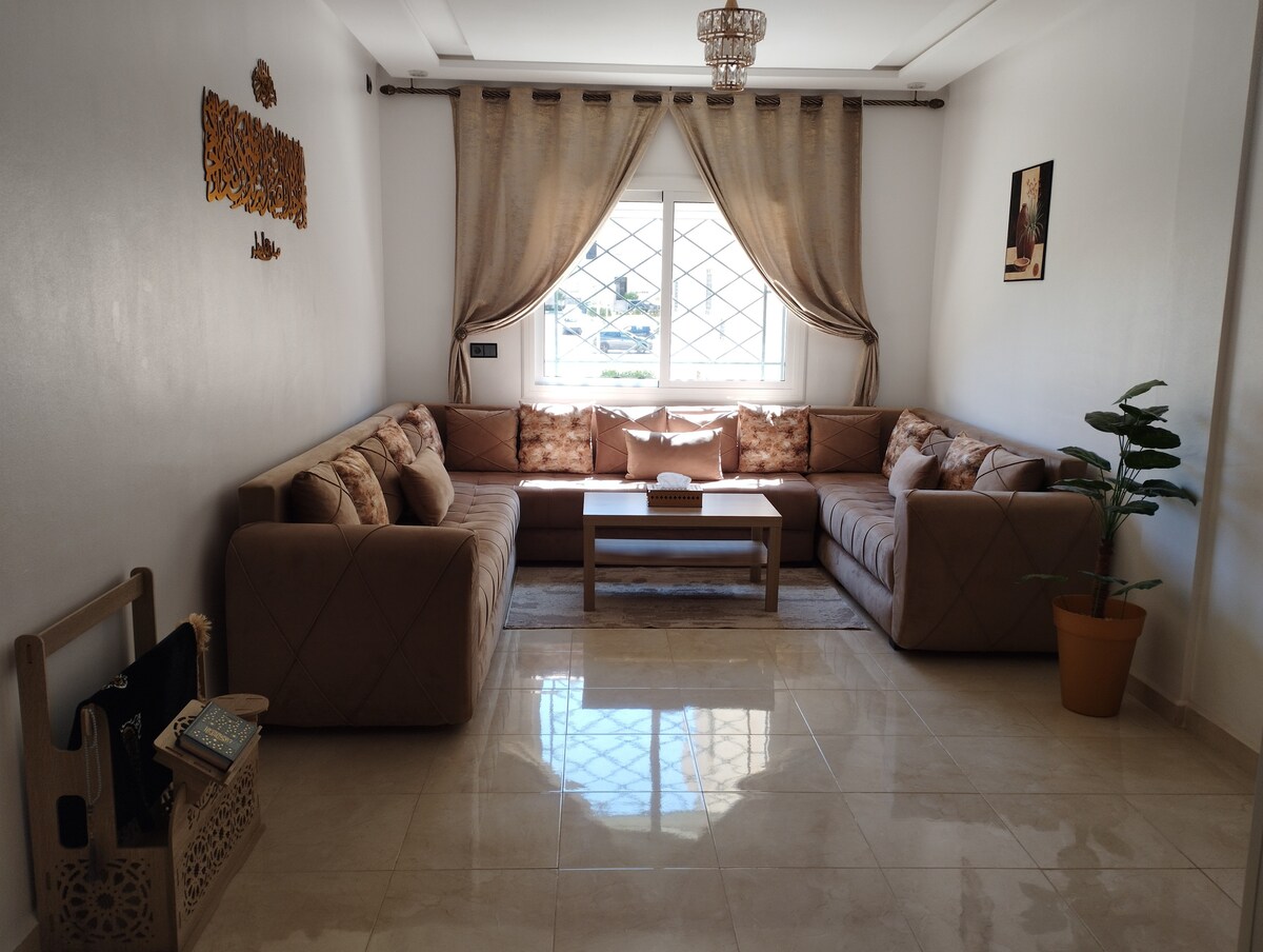 Experience luxury in our spacious apartment, just 5 minutes from Mohamed VI Hospital and 2 minutes from Oujda city center. Enjoy a serene and secure environment, perfect for families, friends, or solo travelers. With plenty of shops and attractions nearby, you'll have everything you need at your fingertips. Relax on your private terrace bathed in sunshine, and take advantage of secure parking. Comfort and convenience await—book your stay today!