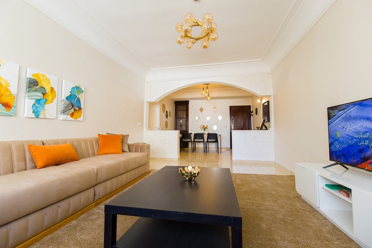 Moderno 2 dormitorios con balcón, salón y bar de café—tu base con estilo en Tánger ✨ • WiFi 100Mb/s | TV Netflix | A/A | Cocina equipada | Lavadora-secadora | Juegos de mesa • Camas: 1 queen + 2 individuales • 5–10min a pie: Marjane/cafés • Estadio • 10–15min en coche: Playa/Centro • acceso autopista • 15 min en coche: Aeropuerto de Tánger • Bus/taxis cerca • Parking Gratis (más concurrido de noche) • Check-in 15:00–22:00 Perfecto para parejas, familias y viajeros de negocios—disfruta Tánger!