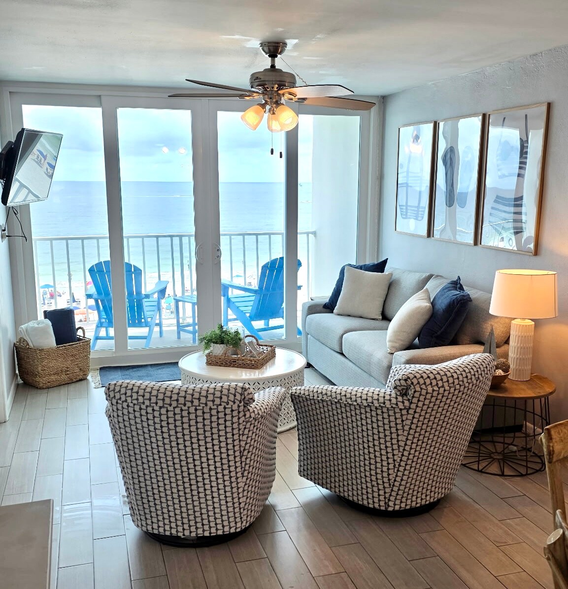 Trae tus chanclas y relájate en este apartamento de playa con vistas al Golfo de México. ¡Beach Haven tiene asientos en primera fila y amplias vistas al mar del golfo y del muelle estatal desde un balcón curvo! ¡Además, disfruta de piscinas cubiertas/al aire libre, jacuzzi y sauna! La codiciada ubicación está en el extremo menos concurrido de la playa, cerca del muelle, el parque estatal del Golfo y el mar y Suds. Perfecto para parejas, solteros, negocios, eventos deportivos y familias pequeñas. Consulta las tarifas para *jubilados*. ¡Disfruta de unas preciosas puestas de sol, del sonido de las olas y RELÁJATE!