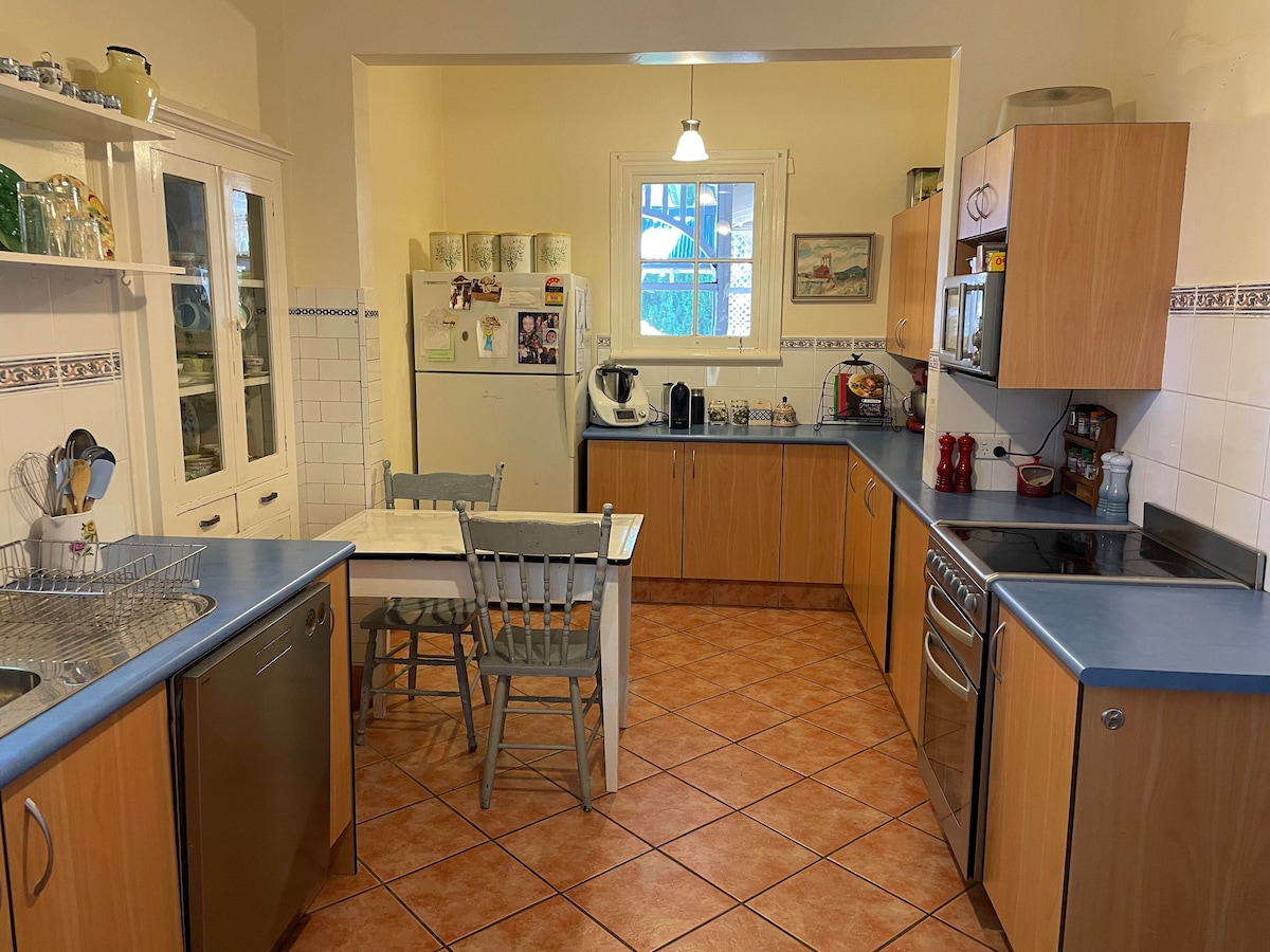 Esta casa de la Gran Federación de 1905, situada en el centro, tiene jardines con entretenimiento al aire libre en una pintoresca terraza. En el interior encontrarás 5 dormitorios que constan de 1 cama tamaño king, 2 camas tamaño queen, 1 cama de matrimonio y 2 camas individuales. También hay disponibles dos camas individuales adicionales en la terraza trasera cerrada. Deja tu coche aparcado en la parte trasera de la casa y podrás ir andando a la calle principal para visitar las cafeterías, pubs y parques. Este alojamiento no es apto para niños menores de 12 años.