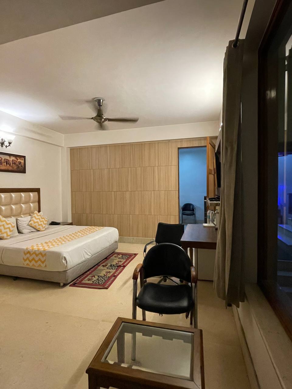 ¡Bienvenido a tu hogar lejos de casa! Nuestra habitación tamaño queen de lujo ofrece una mezcla perfecta de lujo, comodidad y conveniencia. Alójate a pocos minutos del Hospital Artemis, la carretera del campo de golf y la estación de metro Sector 54 Chowk, lo que garantiza una conexión perfecta con la ciudad. Damos la bienvenida a ciudadanos extranjeros.