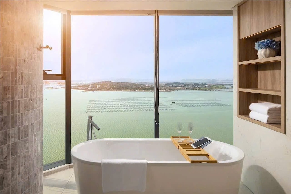 Ubicado junto al InterContinental Halong Bay Resort, este estudio de 45 metros cuadrados totalmente amueblado con impresionantes vistas al mar de la bahía de Ha Long desde el piso alto. Es muy cómodo, con servicios completos para relajarse, entretenimiento y comida a un precio exclusivo para los huéspedes que se alojen aquí y perfectamente situado en la preciosa playa. 🏊♂️Ten en cuenta que la tarifa de la habitación no incluye piscina, jacuzzi, gimnasio, spa y desayuno, que son gestionados por el hotel 5* a la carta. Puedes comprar entradas en la recepción a precio de residente.