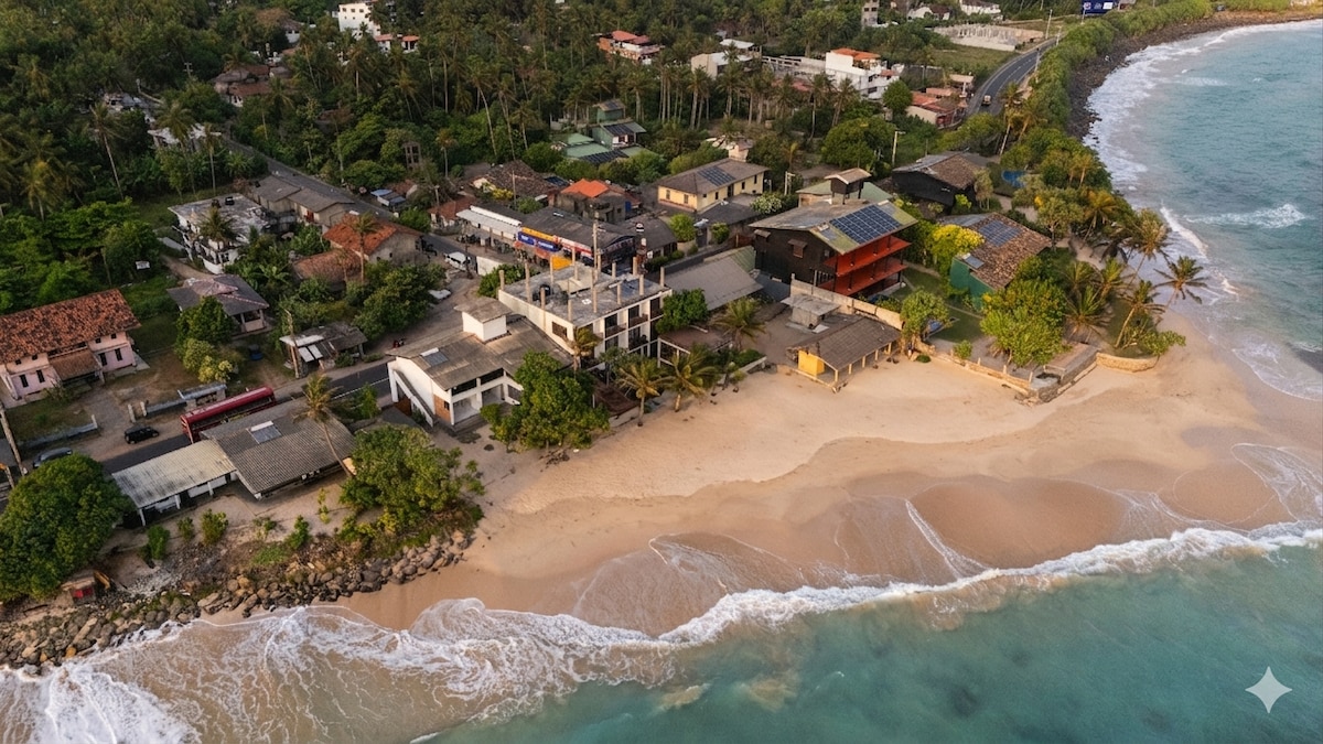 Una de las estancias mejor clasificadas en Sri Lanka, Puzzle Beach House, una lujosa villa frente a la playa, con personal completo, 3 dormitorios (con aire acondicionado) todos en suite, con desayuno de cortesía Esta joya, entre los mejores alojamientos de Airbnb en todo el mundo, combina elegancia tropical y un servicio y comodidad excepcionales. Perfecta para familias, amigos o parejas que buscan un refugio paradisíaco. Un santuario de tortugas, que a los niños les encanta, está a un paso de distancia 2 piscinas familiares, amplias zonas de entretenimiento y un servicio excepcional.