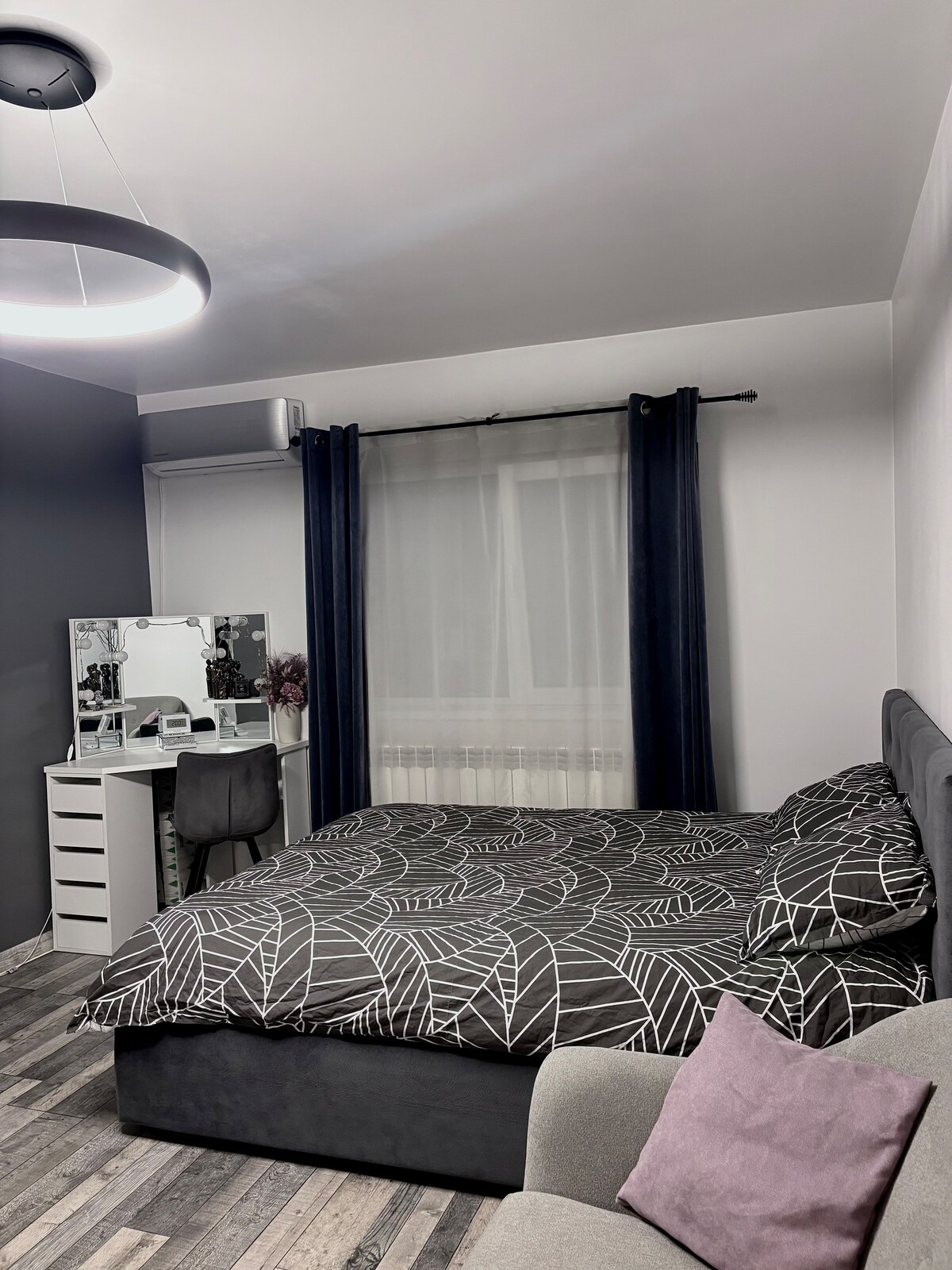 ¡Bienvenido a nuestro hermoso y moderno apartamento, ubicado en el corazón de la ciudad! El apartamento cuenta con un dormitorio espacioso y acogedor con una cómoda cama tamaño queen, sábanas lujosas y un montón de espacio en el armario. La sala de estar es luminosa y espaciosa, con grandes ventanales que dejan entrar abundante luz natural. Es el lugar perfecto para relajarse después de un largo día de turismo o trabajo, con un cómodo sofá y TV de pantalla plana. ¡Estamos deseando recibirte en nuestro hermoso apartamento!