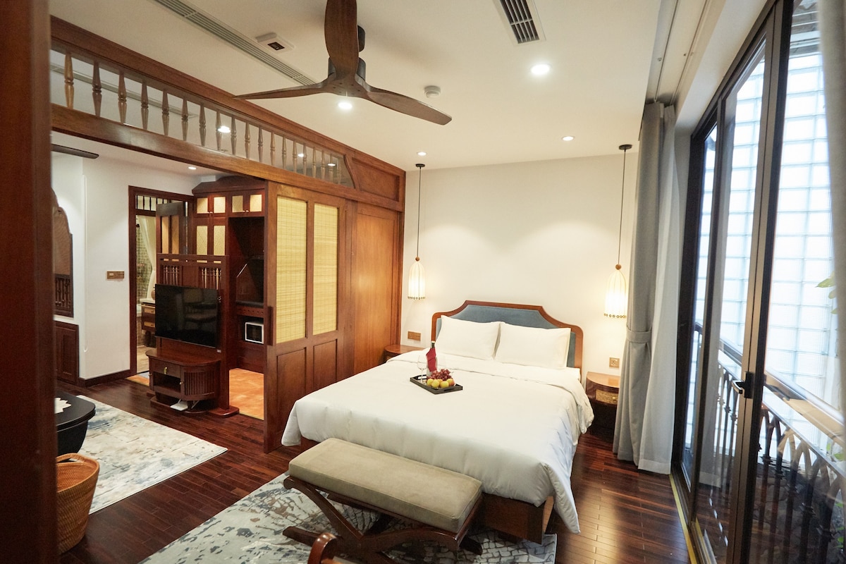 Smoking at outdoor balcony allowed! Nestled on the 3rd floor of a French villa, this newly furnished stylish studio in center district of Ha Noi with bathtub, tranquil neighborhood is perfect for you to relax after a long travel day! Space is equipped with full amenities for a comfortable stay! *Airy space with bathtub, SmartTV *Free Washer+Dryer *Free breakfast (ramen&eggs) *24/7 SELF-CHECKIN!