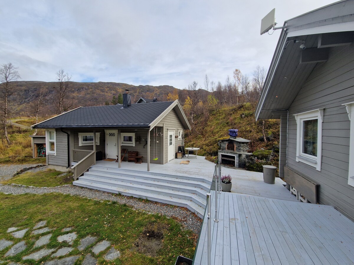 Saluda a todos los pájaros y animales 🧡 ¡Disfruta de la naturaleza que te rodea! Tal vez necesites relajarte, leer un libro o quieras experimentar un baño de hielo en el mar. 🩵 Conocida por su hermosa naturaleza y las auroras boreales. Aquí es fácil observar las auroras boreales (septiembre-abril) Ropa de cama y toallas incluidas en el precio Gran patio para perros (con casa de perros) para aquellos que tienen perros con ellos. (Barco que se puede alquilar, si te interesa)
