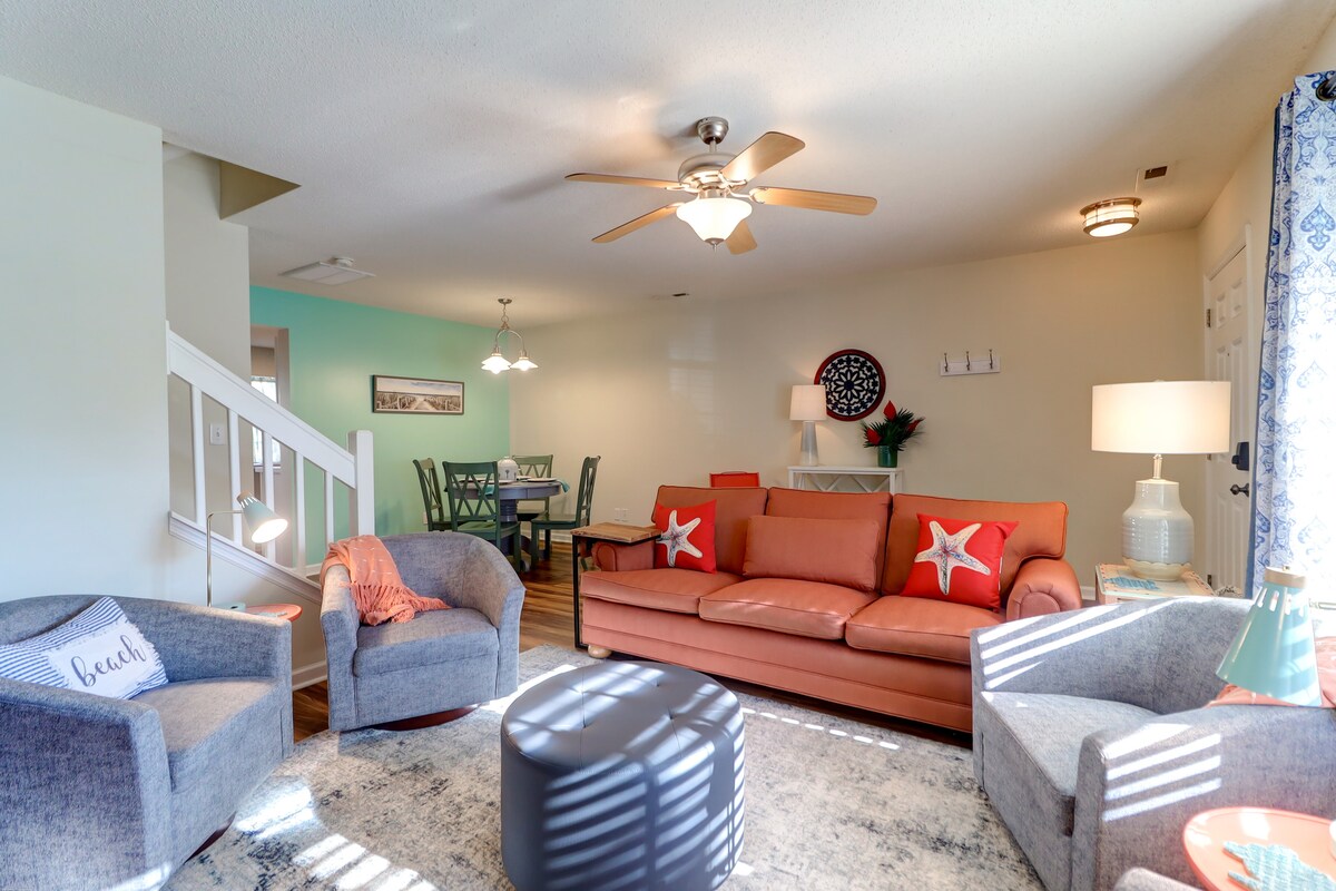 Sea cual sea la ocasión, buscamos mejorar tu escapada con nuestra acogedora casa de 2 dormitorios de 2 dormitorios (king/Queen) y 1,5 baños. Con una ubicación céntrica, navegar por la ciudad se hace rápida y sencilla. El alojamiento tiene una ubicación conveniente a +/- 10 minutos del aeropuerto CHS, +/- 20 minutos del centro de CHS y playas, y a unos 2 minutos de I26. Los alojamientos en el alojamiento incluyen: cocina totalmente equipada, lavadora y secadora, wifi, entrada sin llave, televisores inteligentes (+ servicio de streaming), chimenea, plazas de aparcamiento, juegos y equipo de playa.