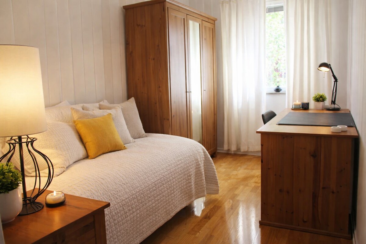 ¡Te damos la bienvenida a la maravillosa fábrica de Gladö! Disfruta de la proximidad a la naturaleza con varios lagos, oportunidades para nadar y hermosos senderos, perfectos para practicar senderismo y ciclismo de montaña. Hay dos kayaks dobles y 2 bicicletas de montaña totalmente amortiguadas disponibles para alquilar a un precio asequible. Ropa de cama, toallas y aparcamiento incluidos. Punto de partida perfecto para explorar las atracciones locales y el pulso de la ciudad. La conexión directa en tren de cercanías a Arlanda a través de Estocolmo Central hace que tu viaje sea suave y cómodo. ¡Te damos la bienvenida a lo mejor de nuestra zona!