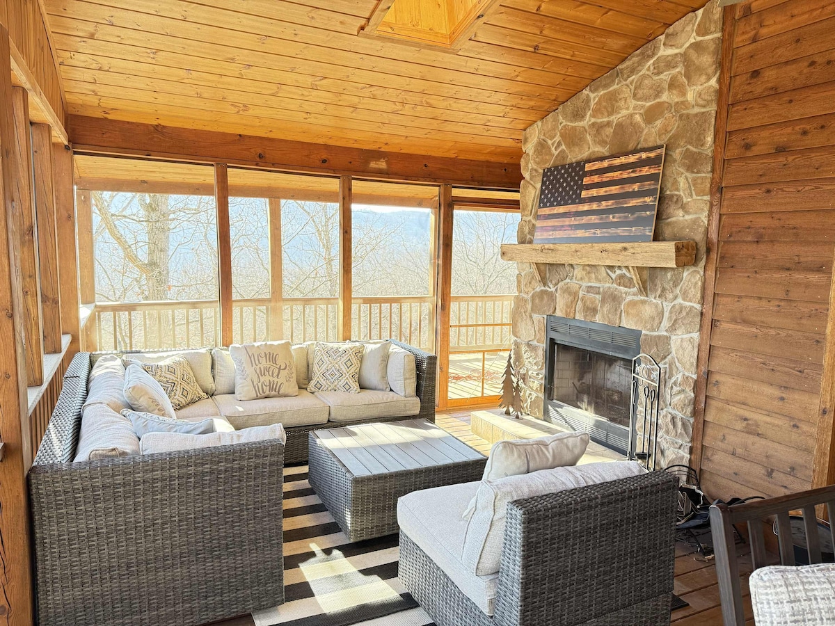 The perfect home to enjoy a spring getaway. Escape the everyday hustle in this 3-bedroom, 2-bathroom home nestled on 10 acres atop a mountain, offering breathtaking views. Watch the sunrise with your morning coffee and savor the sunset with a glass of wine. An outdoor firepit provides a cozy ambiance to enjoy the views, roast some Smores, or just enjoy some time around the fire. Inside, a gourmet kitchen and wood burning fireplace create the perfect setting for quality time with loved ones.