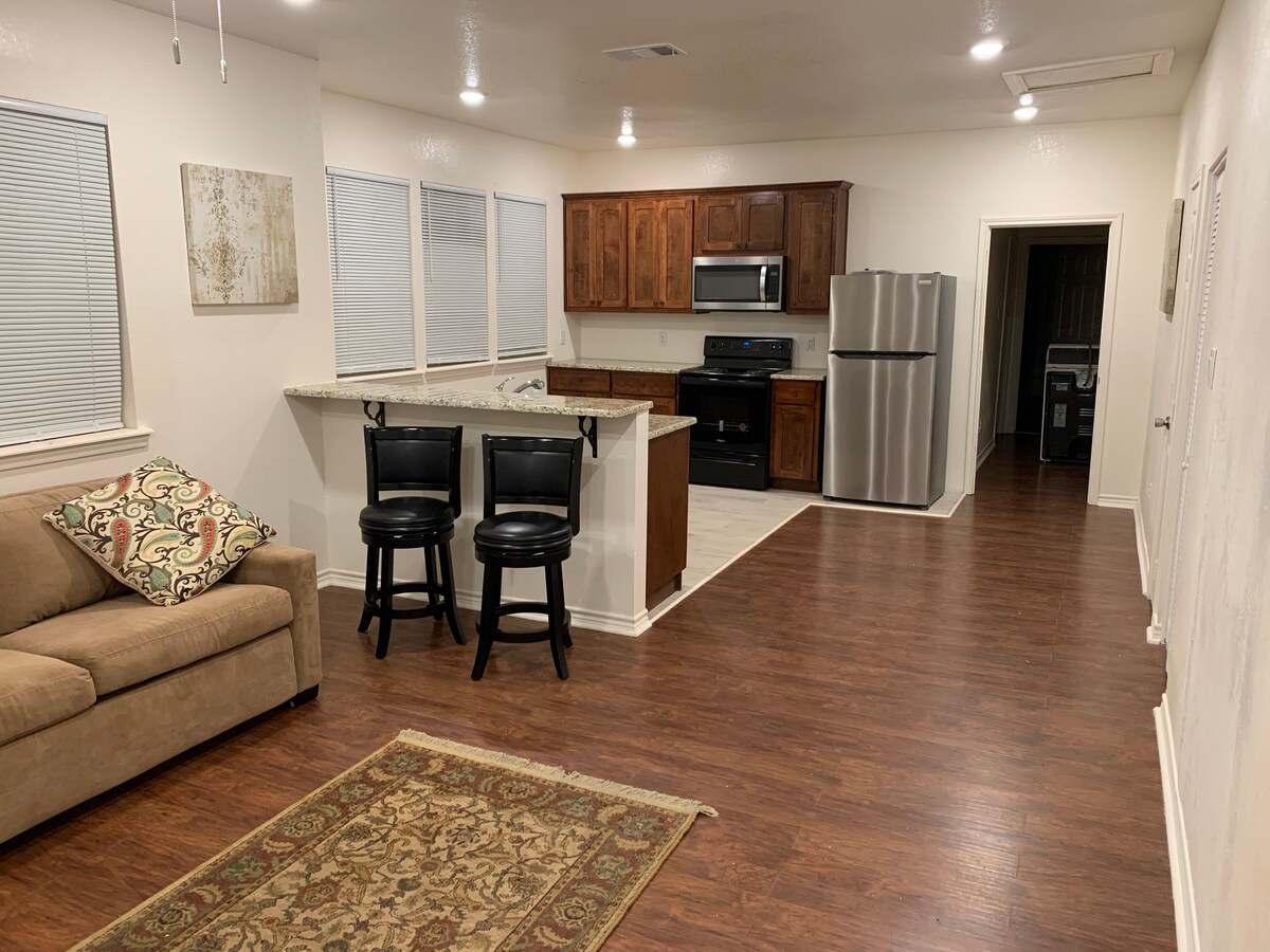 Este es un apartamento de 552 pies cuadrados dentro de nuestra casa. Cuenta con una entrada y una puerta interior con cerradura de seguridad totalmente privadas entre las unidades. Una de las características que creemos que más disfrutarás es la espaciosa ducha con toda el agua caliente que puedas desear. La cocina pequeña está lista para cocinar un poco si lo deseas. Además de la cama tamaño king, el sofá se convierte en una cama adecuada para un niño mayor o un adulto joven, y un colchón individual en el suelo está disponible bajo petición.