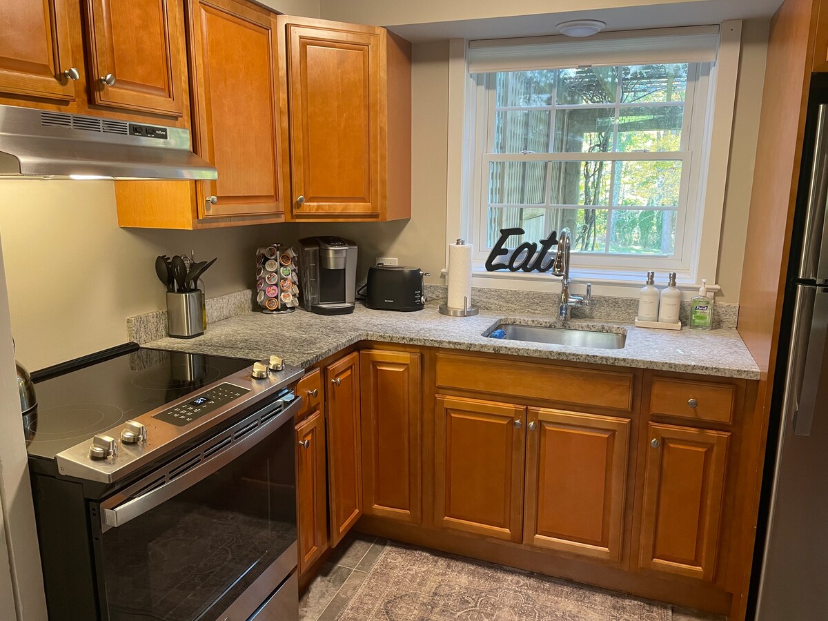 Ubicación céntrica, a pocos minutos de la I84, a 20 minutos de Uconn, a 15 minutos de la capital de Hartford, a 1 hora en coche de los famosos casinos de Cts, a 30 minutos de MGM Springfield, disfruta de restaurantes locales cerca. Suite con entrada privada con estacionamiento para un vehículo en la puerta. Dormitorio privado con cama doble y sofá cama en la sala de estar, espacio de trabajo, TV inteligente, internet, cocina pequeña con nevera, microondas, cocina de 2 hornillas y cafetera, aperitivos y refrescos, ropa de cama, algunos artículos de aseo disponibles.