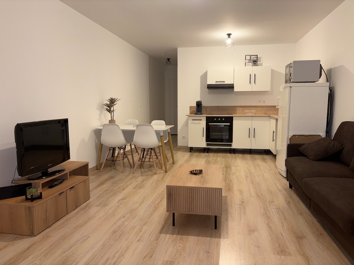 Bienvenido a nuestro apartamento cálido y moderno de 45 m² El apartamento incluye: * 🏡Una entrada con vestidor * 🛏 una habitación con cama doble y espacio de almacenamiento * 🛋 un salón luminoso con sofá (TV,wifi y zona de comedor/oficina) * 🍳 una cocina equipada con placa de cocción, nevera,horno, microondas, cafetera, vajilla * 🚿 un baño con bañera lavadora y secadora de toallas * 🚻 WC separado para mayor comodidad ascensor y plaza de aparcamiento privado disponible en el edificio