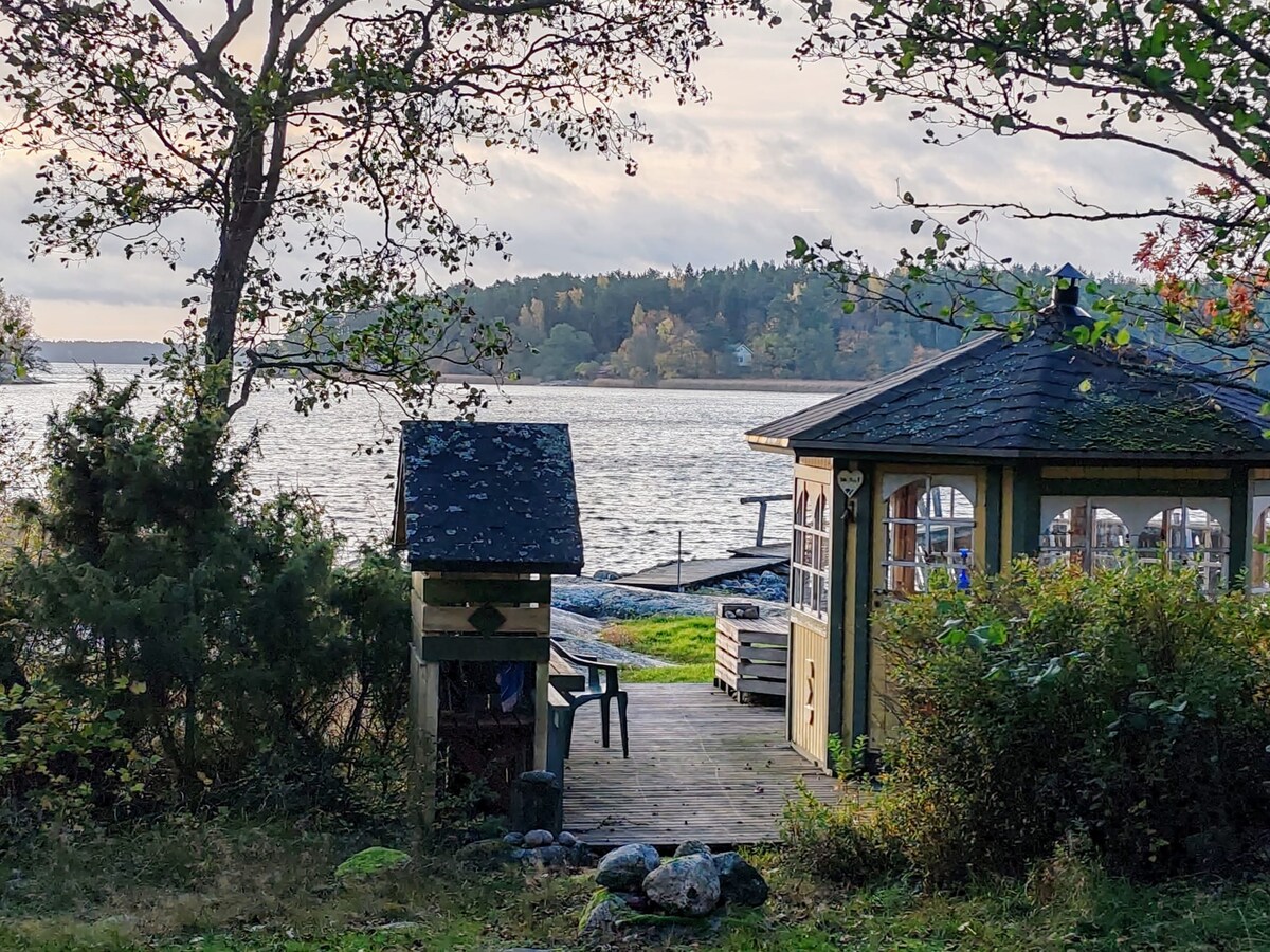 Casa de playa en la playa de Airisto para "gusto adulto". Oasis marítimo y romántico para dos personas. Sauna (magnífica vista), inodoro, ducha, parrilla de gas, playa privada, embarcadero, jacuzzi son para uso privado de los huéspedes. Los servicios básicos, por ejemplo, wifi, TV, platos, lavavajillas, estufa, microondas, café y hervidor de agua, etc., se pueden encontrar detergentes en la cabaña. Sofá cama con colchón y almohadas/mantas de 140 cm de espesor. Precio máximo dos. Trae tu propia ropa de cama y toallas para la visita. ¡No se puede alquilar como lugar de fiesta!