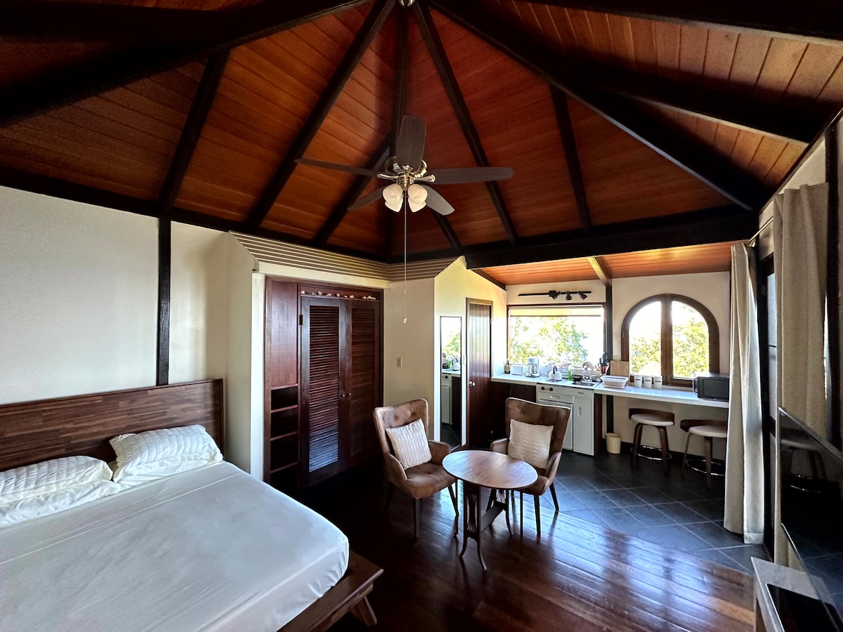 Studio Cottage with kitchenette and outdoor deck, perfect for two. Five minutes drive away from Cane Garden Bay and ten minutes from town, Botanica is a garden oasis spanning over an acre, with four standalone houses. By day, you will be amazed by the views of the hills, the bay and neighbouring islands while you soak in the sun on the deck overlooking the lush garden. At night, you will be lulled to sleep by the sounds of nature - crickets, frogs and the whispering of the coconut fronds.