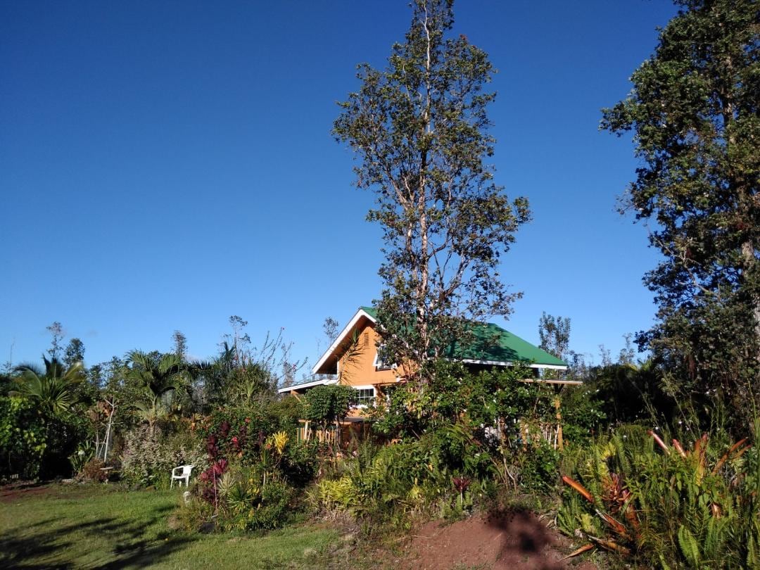 Vista a Mauna Kea. 600 pies de altitud. Cama tamaño queen y sofá en la primera planta. Mesa. Futón completo en el loft. Cortinas opacas. Las sábanas se cambiarán en una semana para una estancia larga. El impuesto de☆ Hawái está INCLUIDO. Se prestan toallas de playa. Se proporciona café y té por la mañana. Tenemos sistemas UV para agua segura. Lavadora en la casa principal (gratis). Parque Nacional de los Volcanes a 40 minutos al oeste, Mauna Kea a 1,5 horas al noroeste, playas de Hilo a 30 minutos al este. Tarifa adicional de 15 USD por cada persona mayor de 2 años.
