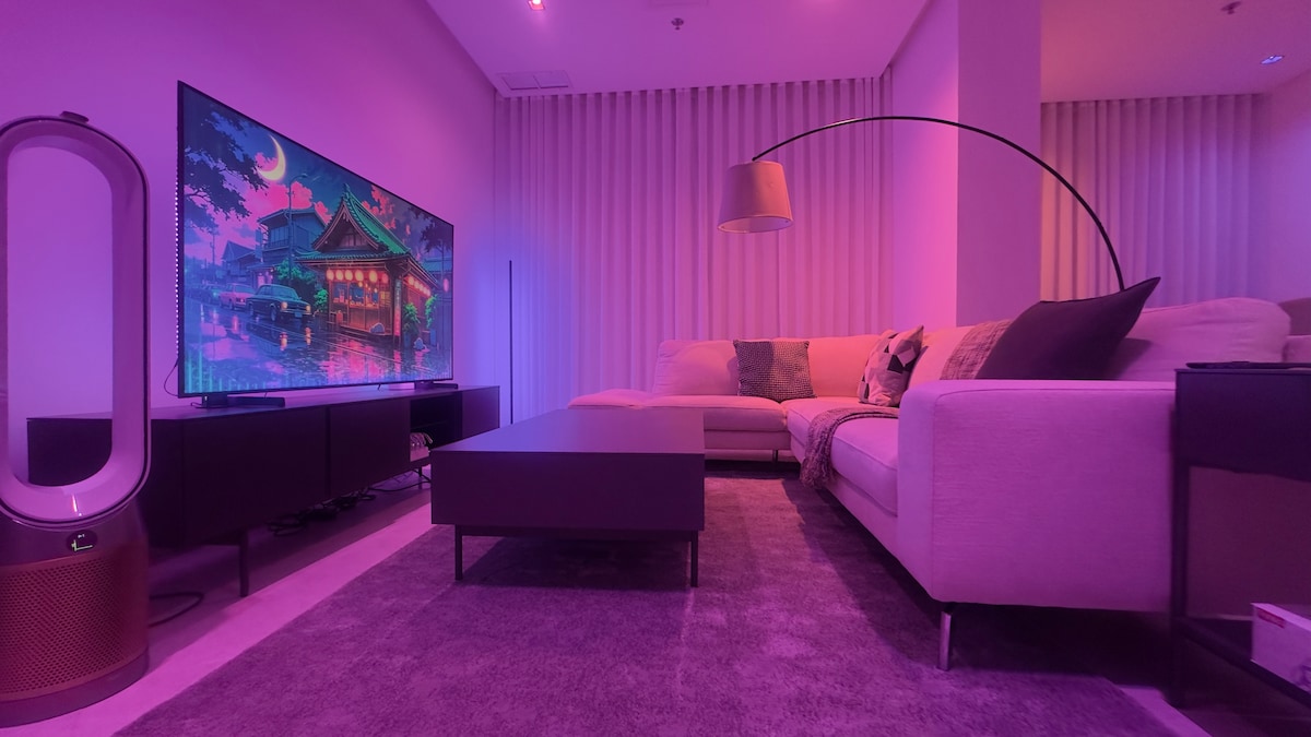 💎Self Check in fully furnished apartment in Salmiya 💎5G ultra speed WiFi 💎Philips Hue color light with mobile app 💎Self Check-In with Electronic lock 💎55’Smart TV / Bluetooth Sound bar 💎50”TV in Bedroom 💎Netflix,OSN, Prime, ZeeTV,SDisney 💎Toiletries & bath towels provided 💎Cable free mobile chargers 💎Dr. Vranjes luxury oil diffuser