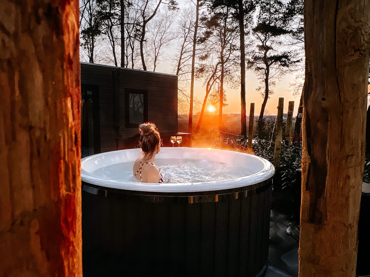 Escapa del bullicio y relájate en nuestra acogedora cabaña natural en el borde del bosque. Aquí solo puedes oír pájaros y a ti mismo. Durante el día, puedes caminar o pasear en bicicleta por el vasto Sallandse Heuvelrug, y por la noche, puedes disfrutar de nuestra bañera de hidromasaje única y sostenible, calentada con combustible biológico, con total tranquilidad. Respetuoso con el medio ambiente, tranquilo y maravillosamente cálido, perfecto bajo un cielo estrellado despejado.* El lugar para los buscadores de paz, los amantes de la naturaleza y las noches románticas en el campo.