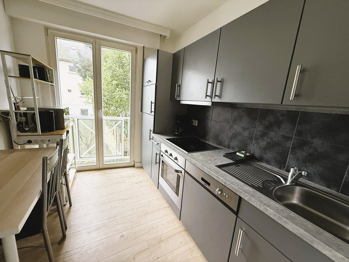 Apartamento tipo estudio en la planta baja, bien situado y recientemente reformado, en la encantadora y tranquila zona de Dommeldange. Hay un aparcamiento gratuito en el sitio, así como una terraza exterior para disfrutar (también para los fumadores). El televisor tiene una cuenta de Netflix para huéspedes y la señal wifi es buena. Hay algunos buenos restaurantes locales y supermercados a poca distancia a pie, sin embargo, hay excelentes conexiones de transporte para llegar a la ciudad, ya que la estación de tren y las paradas de autobús están a 2 minutos.